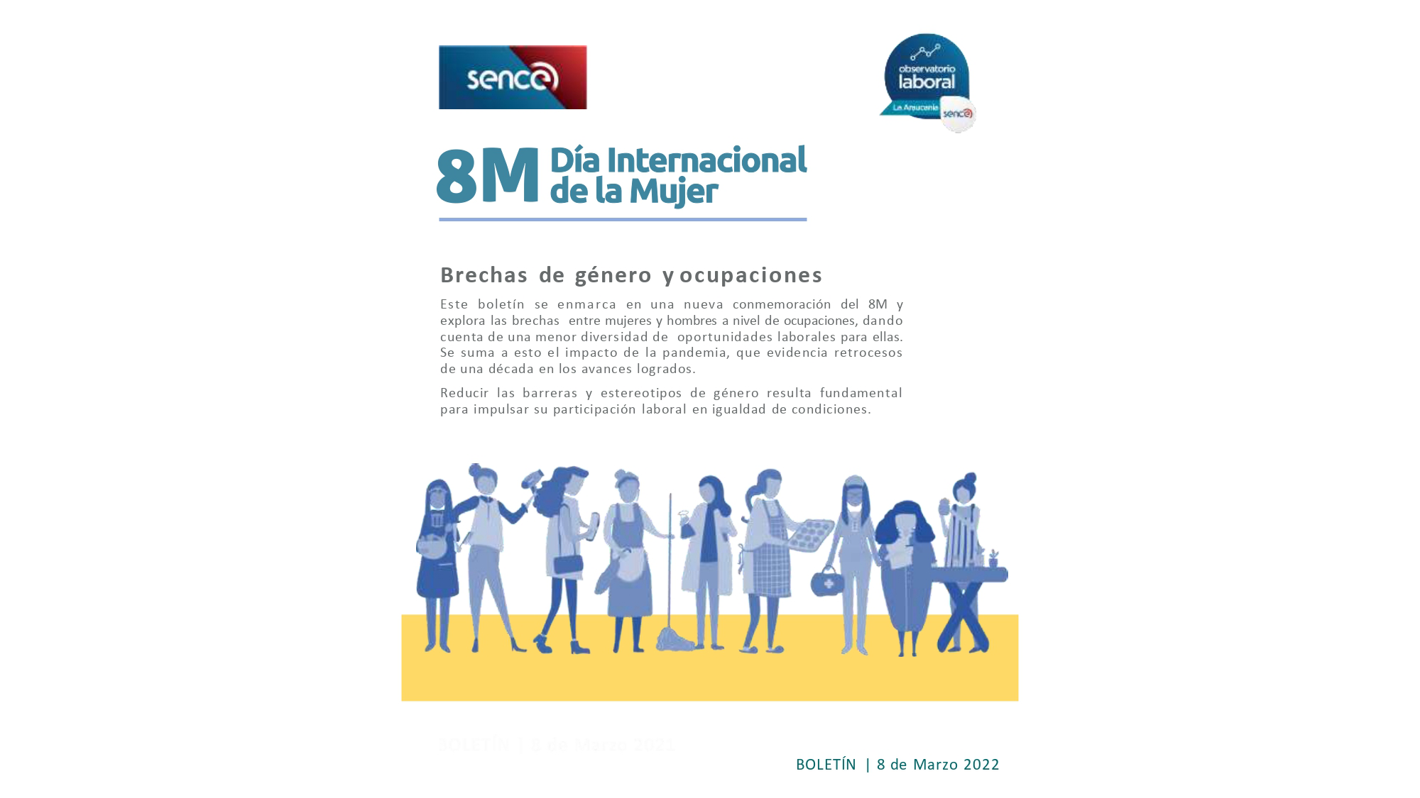 En el marco de la conmemoración de un nuevo Día Internacional de la Mujer, el Observatorio Laboral Araucanía realizó un análisis de cifras vinculadas al empleo femenino y los efectos postpandemia a partir de datos provenientes del Instituto Nacional de Estadísticas, entre los que destaca el que en 2021, la tasa de participación laboral femenina fue del 37,8%, es decir, de cada 10 mujeres de más de 15 años, sólo 4 se encontraban trabajando o buscando trabajo.